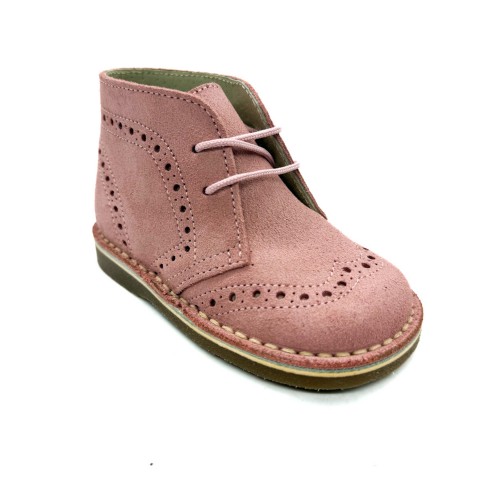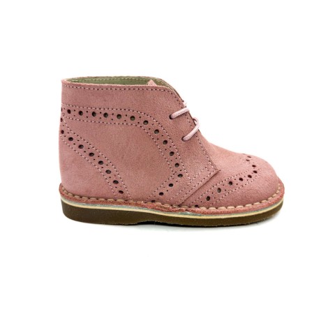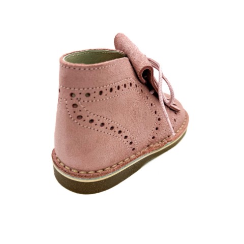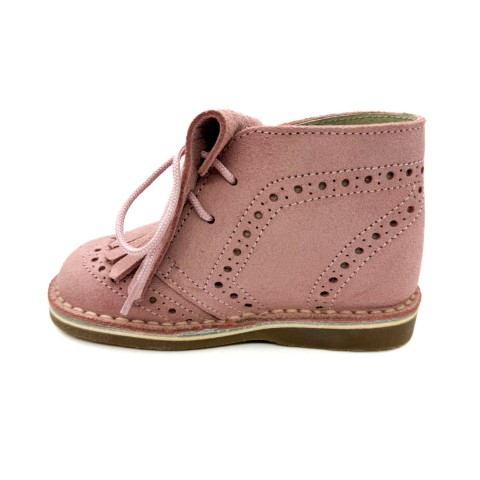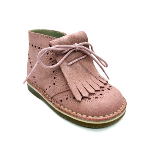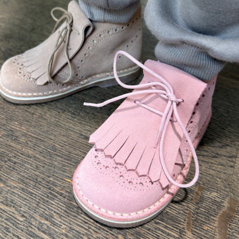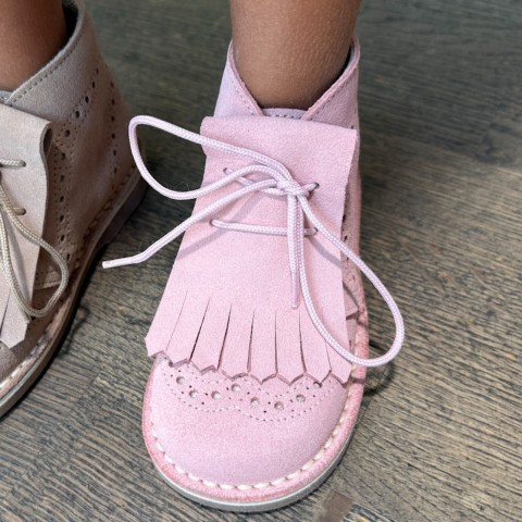 Polacco in camoscio rosa con sottopiede anatomico in vera pelle allacciato con frangia removibile