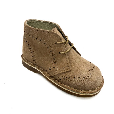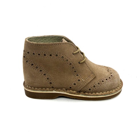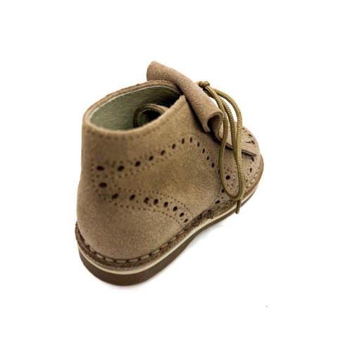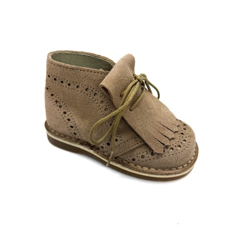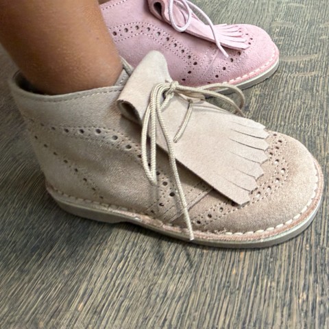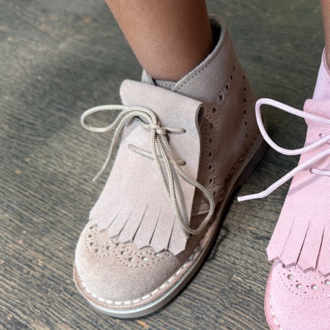 Polacco in camoscio beige con sottopiede anatomico in vera pelle allacciato con frangia removibile