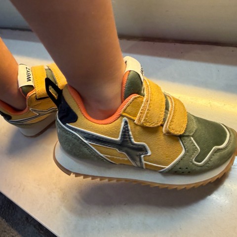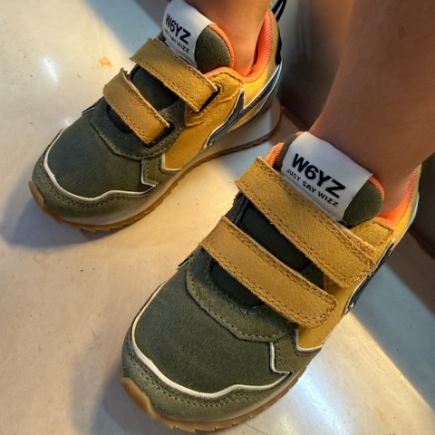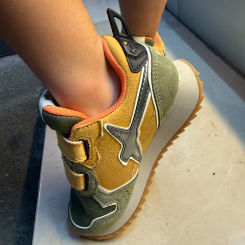 Sneaker con doppio velcro e fondo in vera gomma antiscivolo. Sottopiede estraibile anche per inserire un plantare personale