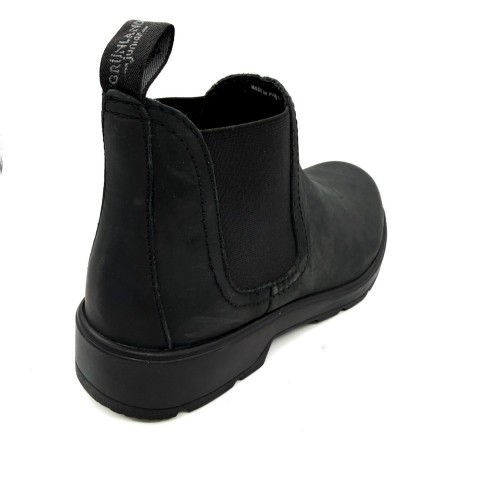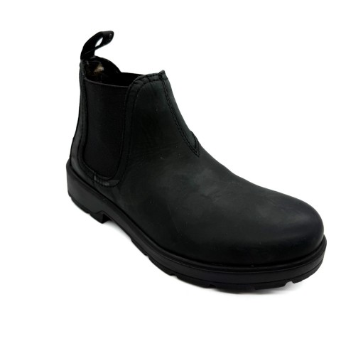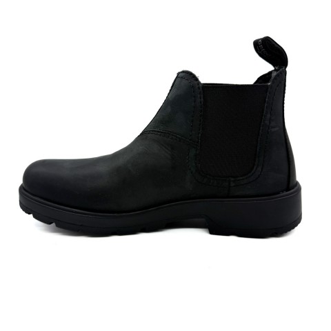 Stivaletto beatles con elastici laterali e fondo in gomma antiscivolo. Tomaia in pelle effetto ingrassato, sottopiede vera pele