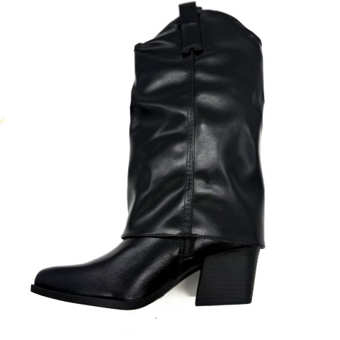 Stivale in ecopelle con risvolto. Tacco 7 cm, altezza gambale