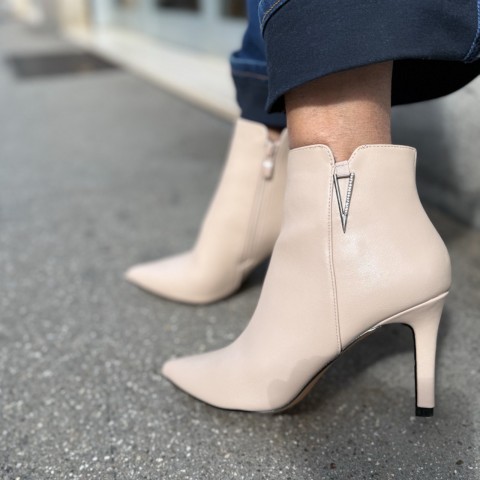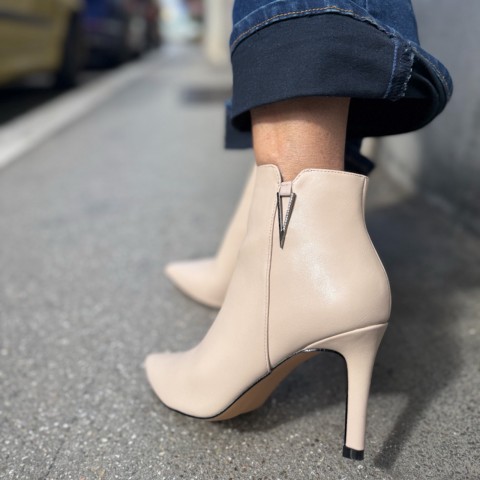 Stivaletto avorio con tacco sottile di cm.7,5 e cerniera interna