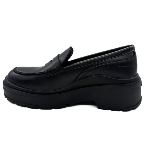 Mocassino con suola platform e logo dorato nella linguetta. Suola dietro alta 4,5 cm e davanti 2,5 cm