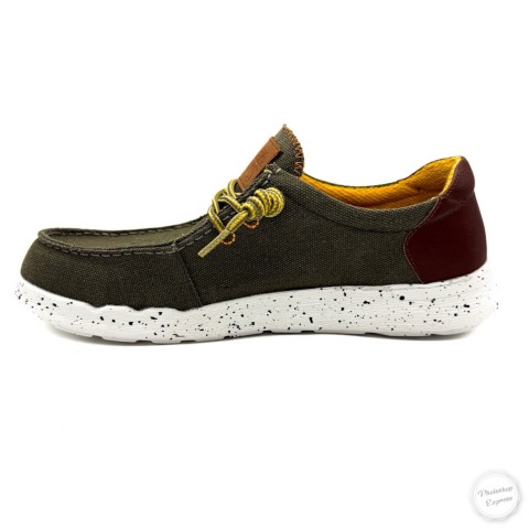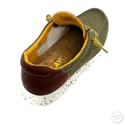 Mocassino in cotone con sottopiede estraibile in sughero. Tallone rinforzato color marrone