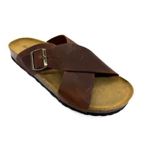 Sandalo cuoio uomo fasce incrociate Bio Bio