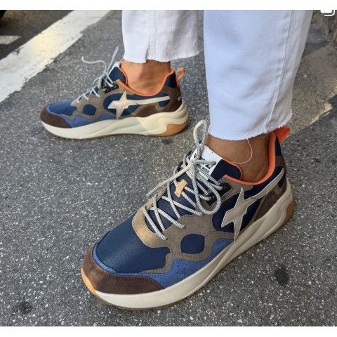 Sneaker in suede e tessuto tecnico con chiusura con lacci e fondo in gomma. Fodera e soletta in tessuto tecnico che avvolgono il piede con leggerezza
