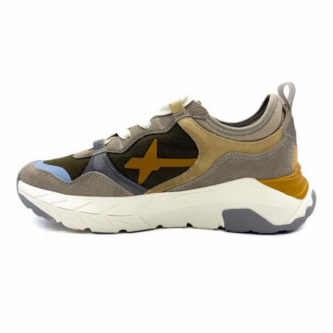 Sneaker in suede e tessuto con fodera e soletta in tessuto, chiusura con lacci, suola in gomma leggera e sicura. Sneaker che combinano suede e tessuto per un look urbano e dinamico. La fodera in tessuto garantisce comfort durante tutto il giorno, mentre la suola in gomma offre una camminata leggera e sicura. Chiusura con lacci e design moderno, ideale per chi ama uno stile sportivo, ma raffinato, perfetto per la città.